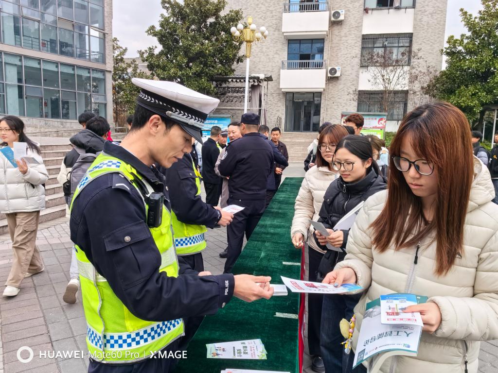 2025年12月2日是全国第十四个交通安全日,为进一步提升广大师生的交通安全意识和文明意识,增强自我防护能力,12月11日,学院保卫处联合汉中市公安局交警支队一大队四中队、公安汉台分局宗营派出所、汉台区宗营镇政府走进我院开展“文明交通始于心 平安校园践于行”交通安全宣传活动。